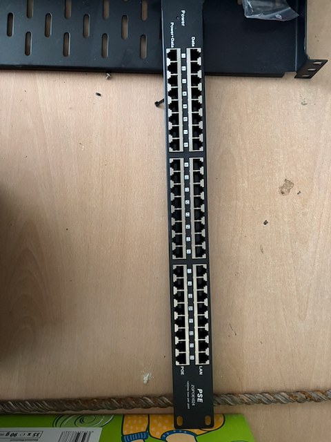 Rackovy patch panel s vice RJ45 porty, vhodny pro sitovou nebo datovou instalaci.